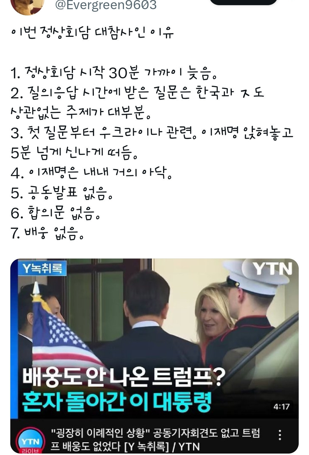 - 외신 기자들도 회담했다면서 왜 공동성명 하나 안 보이냐, 이런 회담 처음 봤다"