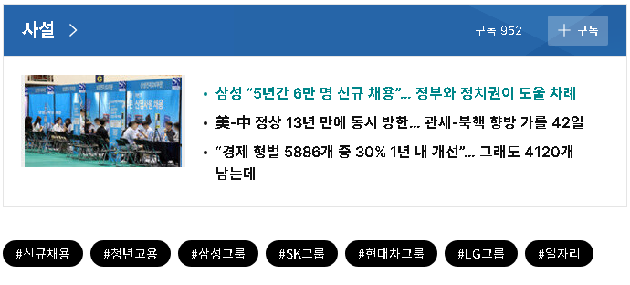 경기 침체와 미국발 관세 폭풍 등으로 어려운 경영 여건에서 기업들이 대규모 신규 채용 계획을 밝힌 만큼 이제는 정부와 정치권이 적극적으로 도울 차례다. 16일 이 대통령은 신규 채용을 확대하는 기업에 지원을 늘리는 방안을 검토하라고 했는데, 기업들이 마음껏 투자와 고용을 늘릴 수 있도록 과감한 지원에 나설 필요가 있다. 신성장 산업을 집중 육성해 고용을 많이 창출할 수 있는 여건을 조성해야 한다.