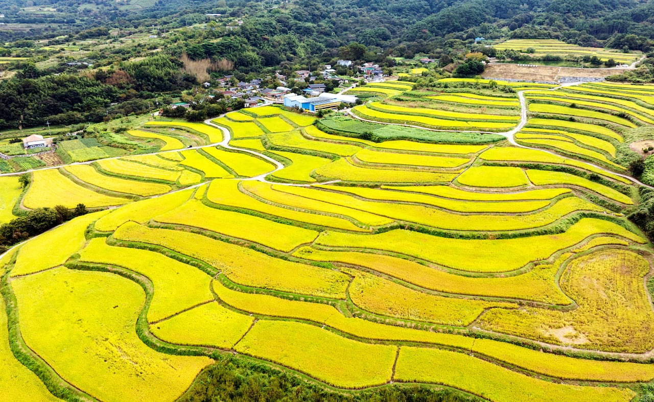 전남 구례 산동면의 다랭이논은 그 계절의 변화를 가장 극적으로 보여준다. 산비탈을 따라 층층이 쌓인 논마다 황금빛이 번지고, 그 풍경은 가히 장관이다./김영근 기자
