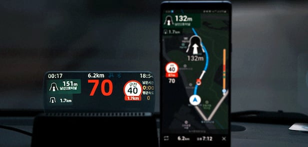 차량 기본 옵션으로 장착된 HUD엔 한계가 있었다. “현재 속도와 시간 정도만 띄우면 계기판과 다를 바가 없습니다. 그래서 길 안내 기능이 추가됐어요. 하지만 외국산 자동차에 적용된 내비게이션은 한국 도로 사정을 제대로 반영하지 못했고, 국산 자동차도 실시간 교통 상황까지는 담아내지 못하더군요. ‘스마트폰 내비게이션을 쓰는 것처럼 HUD를 쓸 수 있도록 돕는 기기를 만드는 것’을 목표로 하고 개발에 착수했습니다.”