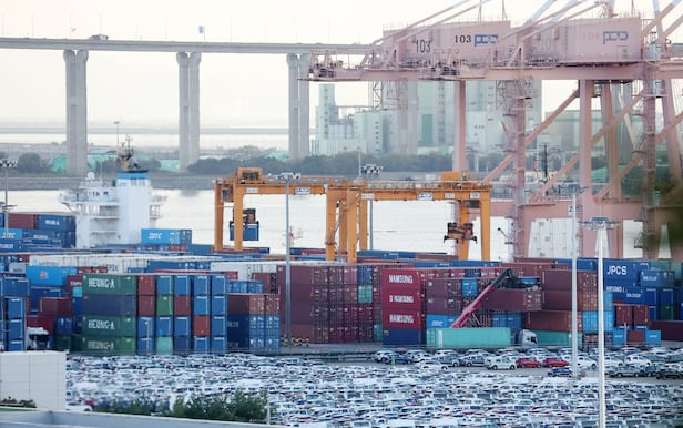 경기 평택시 포승읍 평택항에 수출용 컨테이너들이 쌓여있는 모습. /뉴스1