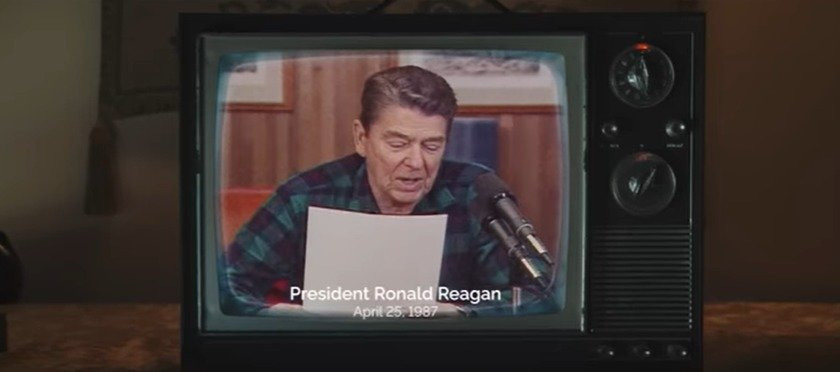 캐나다 온타리오주 정부가 도널드 트럼프 행정부의 관세 정책을 비판하기 위해 활용한 로널드 레이건 전 대통령의 1987년 4월 라디오 연설 영상. (사진=온타리오주 광고 영상 갈무리)