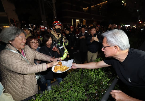 치킨집 앞에서 바나나우유 나눠준 젠슨 황…"이게 왜 진짜" 반응 폭발