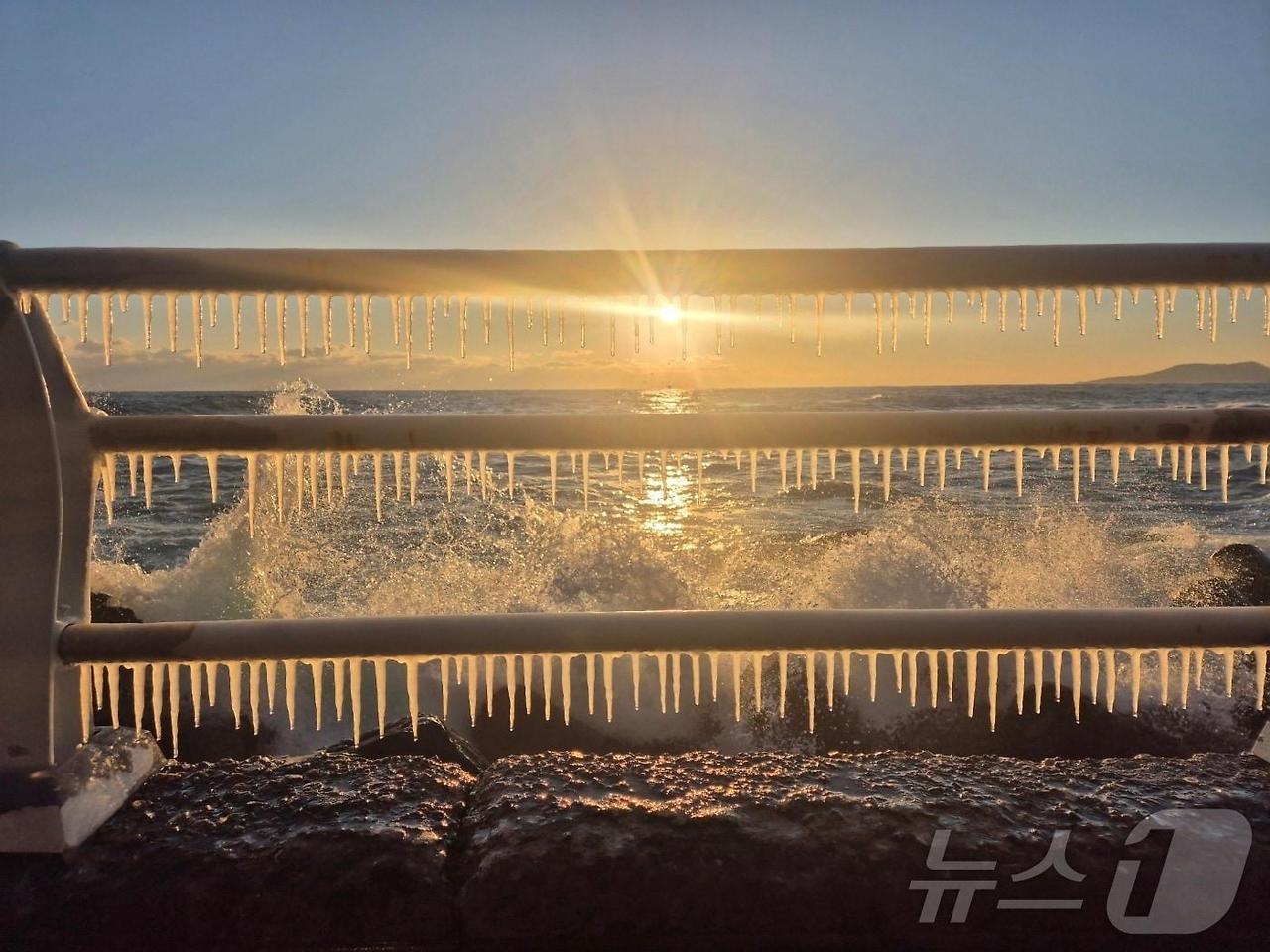 같은 시각 강원 강릉의 해안도로인 헌화로에는 '고드름 커튼'이 형성돼 이색적인 장관을 연출했다.