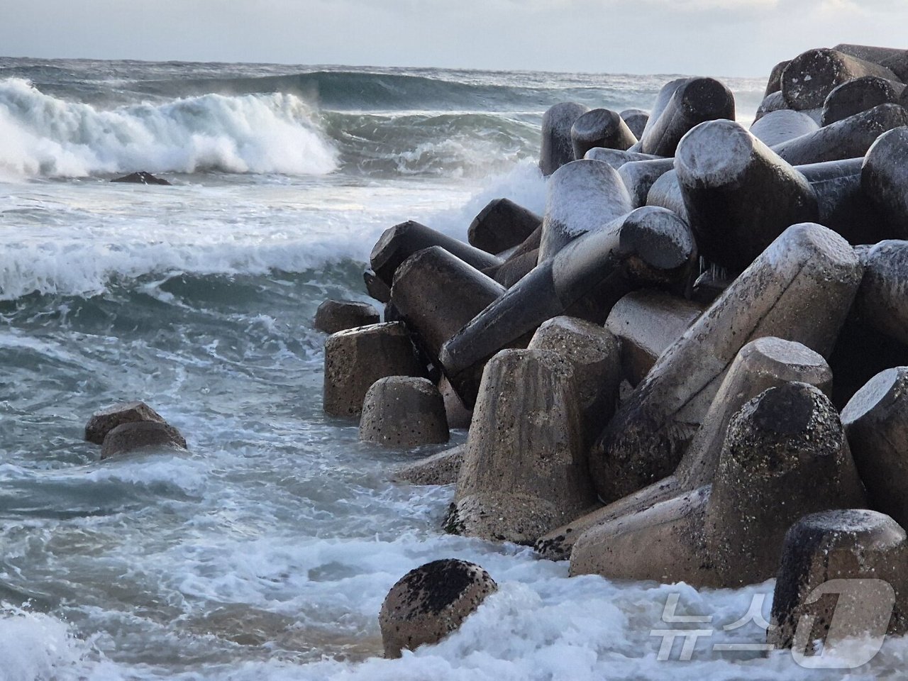 강원 대부분 지역에 한파특보가 발효된 26일 강릉시 강문해변 테트라포드에 얼음이 얼어붙어 혹한의 기세를 보여주고 있다. 2025.12.26/뉴스1 ⓒ News1 윤왕근 기자