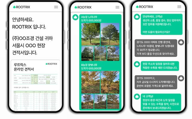 루트릭스는 나무가 필요한 건설사, 시공사, 개인과 나무 공급자를 연결하는 유통 플랫폼을 운영하고 있다. 전국 700개 이상의 농장 데이터를 수집해 수종, 규격, 수형, 가격 등의 정보를 정량화하고 디지털화했다. 단순한 중개를 넘어 구매자가 필요로 하는 나무 리스트를 바탕으로 견적부터 구매, 복잡한 유통 프로세스까지 전담하는 컨시어지 방식으로 서비스를 운영하는 것이 핵심이다.