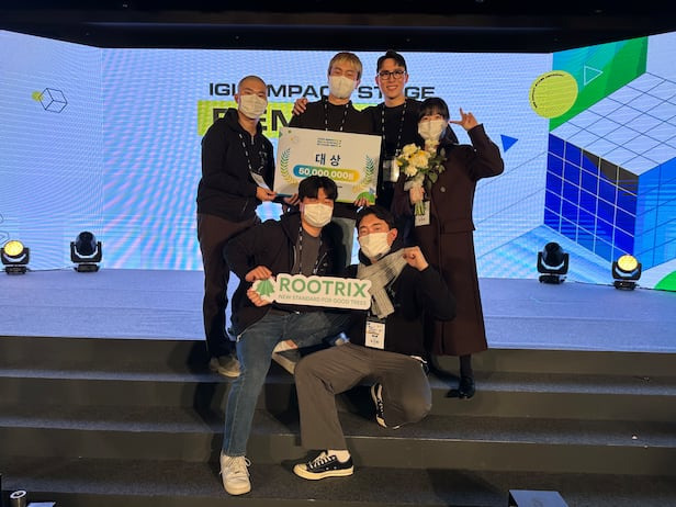 한 창업경진대회에서 대상을 받고, 기념 사진을 촬영한 루트릭스 팀원들. /루트릭스