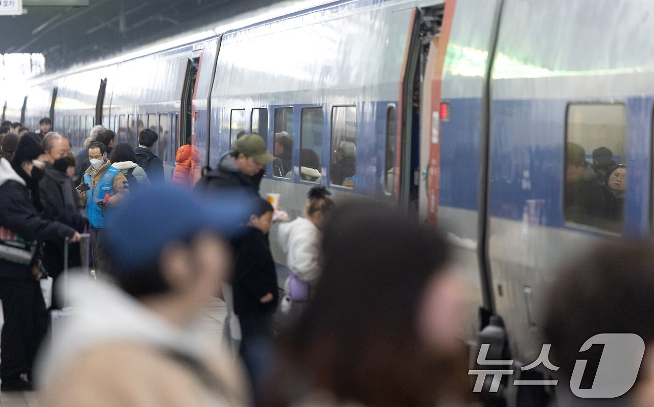 설을 앞둔 지난 13일 서울 용산역에서 귀성객들이 열차에 탑승하고 있다. 2026.2.13 ⓒ 뉴스1 이승배 기자