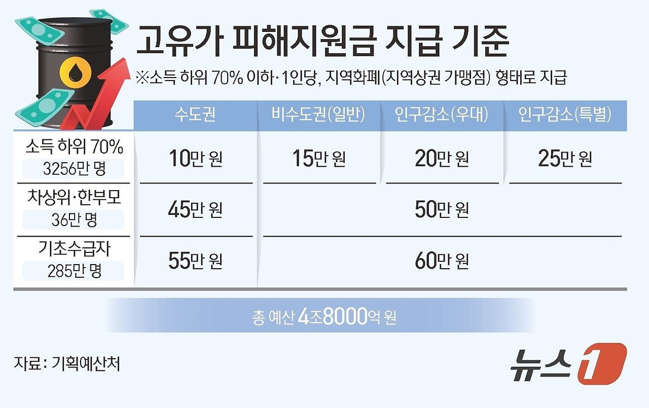 소득 하위 70%·차상위 총 3580만명에 '고유가 피해지원금'…1인당 10만~60만 원